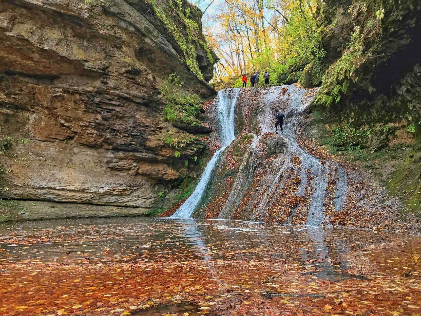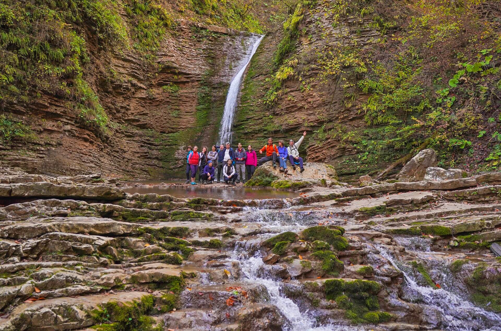 Вас ожидает экспедиционная «заброска» к началу маршрута, в места дикие и малопосещаемые. Осваиваем «динозавра» советской эпохи – вездеход ГАЗ 66, далее короткий, но запоминающийся заброс в объекту (10 км) – глубокому ущелью, древнему тектоническому разлому с крутыми склонами, каменными террасами, гротами и отвесными скальными коридорами высотой до 150 м. Склоны ущелья Руфабго густо покрывает буковый лес, деревья и скалы обвиты гирляндами Колхидского плюща.